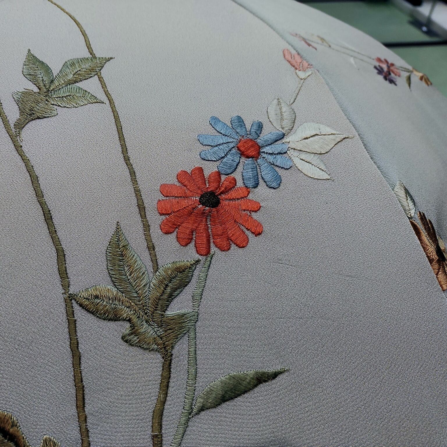 花柄の刺繍という、日本の美しい伝統を感じさせるデザインは、どんなコーディネートにも自然に馴染み、女性らしさを引き立てます。傘を差して歩く姿は、まるで映画のワンシーンのようです。日本の伝統と美を身に纏って、特別なひとときを演出しましょう。