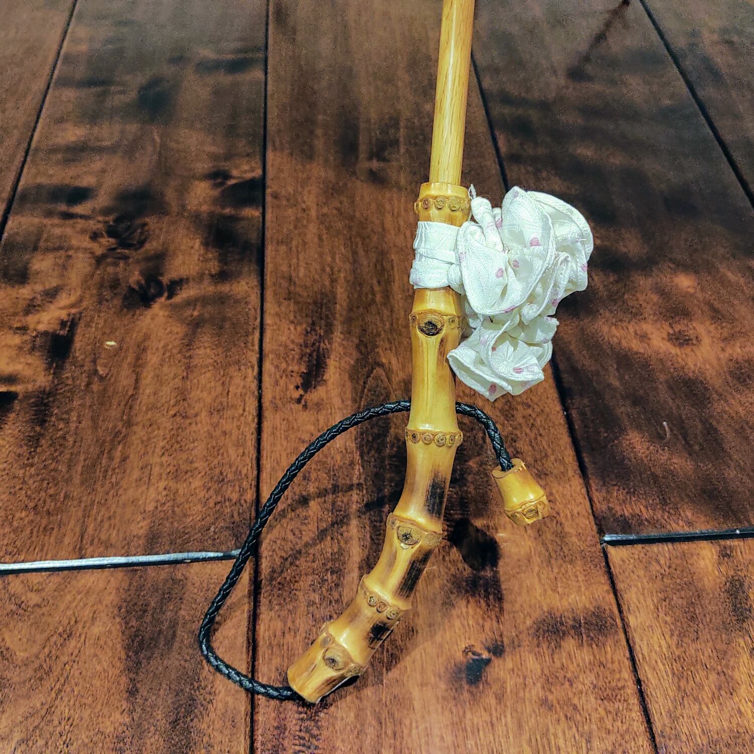 手元は寒竹、芯棒は丈夫で高級感のある樫の木製です。